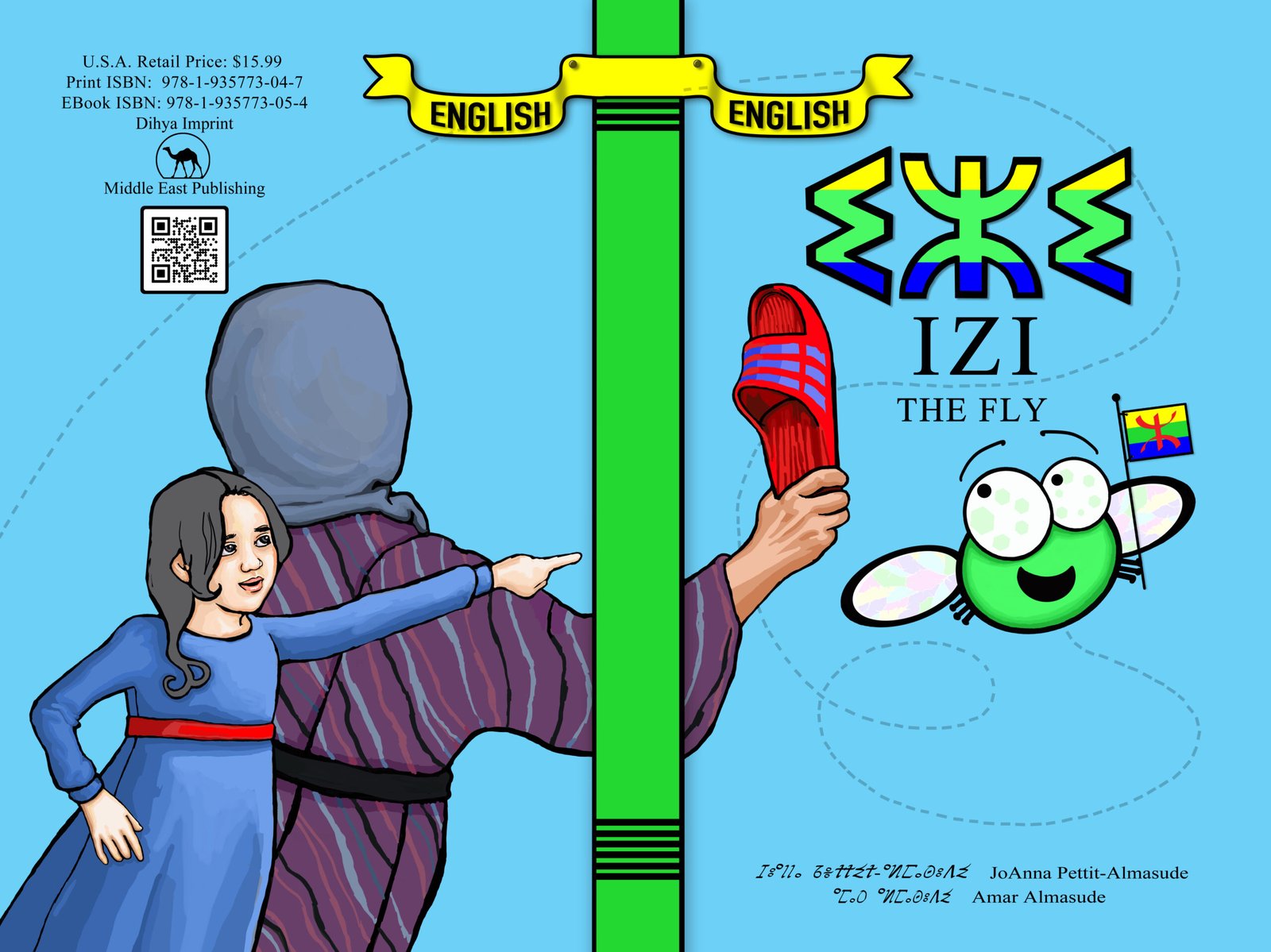 “IZI, pronounced as “ezee,” meaning “fly” in Tamazight (Nador), is a children’s book that offers a wealth of educational benefits. It tells the story of a cute little fly, IZI, who is on a quest for food. As IZI flies around the house, getting into all sorts of trouble, children have the chance to learn words in Tamazight (using Tifinagh script & Latin) and English. Parents can share this enriching experience with their children in either or both languages. This engaging book not only facilitates language learning but also enhances cognitive development, making it a valuable resource for Amazigh parents living in the United States and other English-speaking countries.”